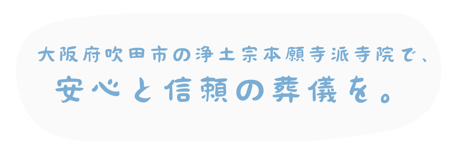 | 交通案内 | 阪急大阪梅田駅から阪急相川駅まで14分、JR大阪駅からJR吹田駅へは8分とアクセス抜群。 大阪市内からもお参り頂きやすくなっています。 阪急相川駅から徒歩4分 JR吹田駅から徒歩10分 |